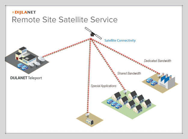 Even those customers not within range of one of DijlaNet's existing citywide wireless networks can benefit from DijlaNet's communications services, anywhere in Iraq. These remote sites (for example, oil & gas sites) can utilize DijlaNet's existing satellite network to transmit and receive data utilizing a small satellite antenna, which DijlaNet can provide and install. We will custom design a solution to meet the customer's data and communications requirements. With DijlaNet Satellite, no location in Iraq is "out of range" of our state of the art communications network.